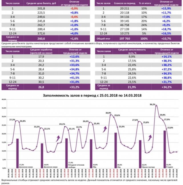8 марта заполняемость залов составила 36%, что выше заполняемости 23 февраля (31%).
