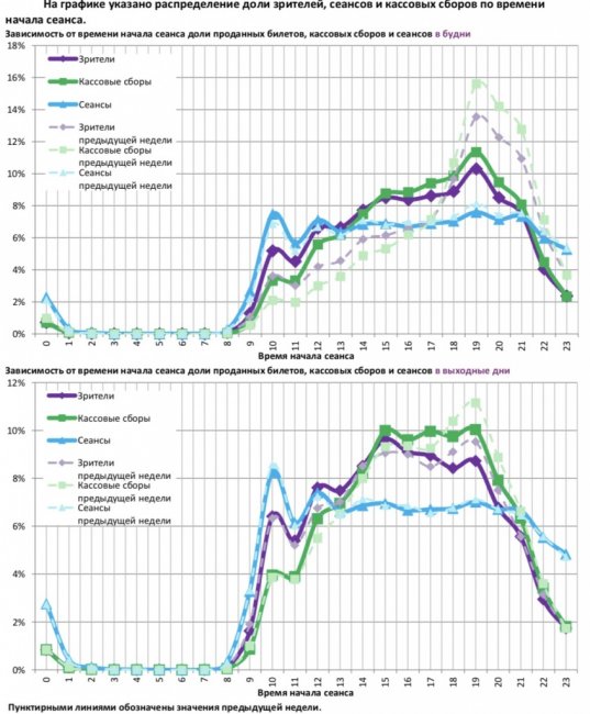 Как показывает индустриальная статистика с 8 по 14 марта (неделя №10), за неделю с четырьмя выходными днями (начиная с 8 марта) в российские кинотеатры пришло 5,3 млн зрителей, ровно столько же было на позапрошлой неделе с тремя праздничными днями, включая 23 февраля. Каждый четвертый билет пришелся на новинку-лидера – российскую комедию «Я худею».