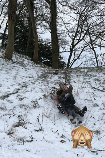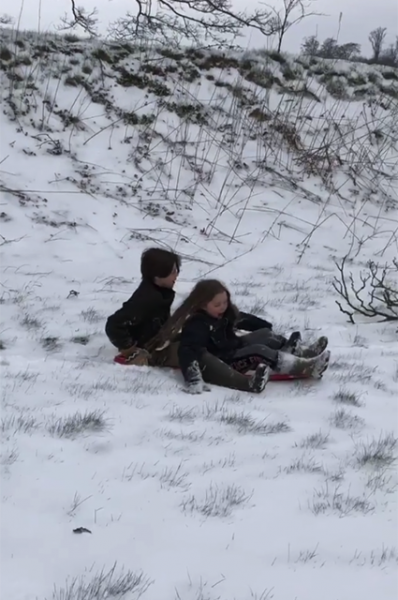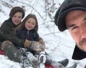 Дэвид Бекхэм повеселился с детьми на снежной горке