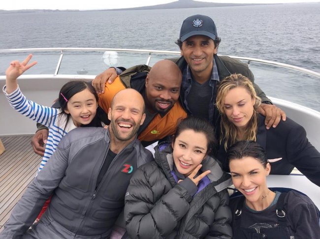 Джейсон Стэйтэм и компания на фото со съёмок фантастического блокбастера «МЭГ», посвящённого нападению доисторической и крайне опасной акулы. На широких экранах картина окажется 9 августа.