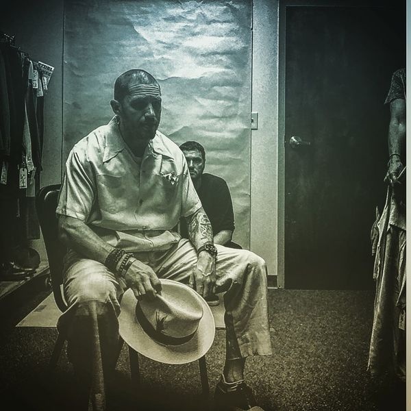 На снимках помимо Харди в татуировках мы видим гангстерскую атмосферу 40-х, а также актера Стивена Грэма, который не был заявлен в актерском составе, но, видимо, влился в команду в последний момент. Или же Грэм просто консультирует Харди, поскольку играл Капоне в "Подпольной империи".