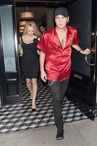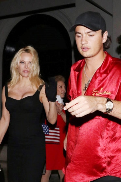 50-летняя Памела Андерсон и ее 21-летний сын Брэндон Ли были замечены в одном из ресторанов Западного Голливуда, куда приехали поужинать вдвоем. Папарацци не упустили из виду знаменитостей, которых было трудно не заметить. Брэндон, делающий успехи в модельном бизнесе, пришел на встречу с мамой в ярко-красной шелковой рубашке и черных брюках, а Памела выбрала однотонный образ, надев черное платье на бретелях, перчатки и туфли.