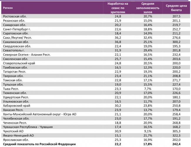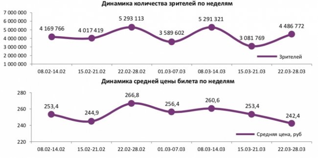 Средняя цена билета снизилась до 242 рублей из-за школьных каникул, когда дневные сеансы не менее востребованы, чем вечерние.