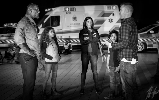 Дуэйн Джонсон, Нив Кэмпбелл и режиссёр Роусон Маршалл Тербер на фото со съёмочной площадки «Небоскрёба» - приключенческого экшена в духе «Крепкого орешка» и «Ада в поднебесье». Также в каст входят Пабло Шрайбер, Чин Хань, Байрон Манн и Роланд Мёллер.