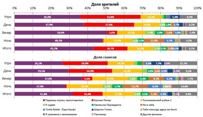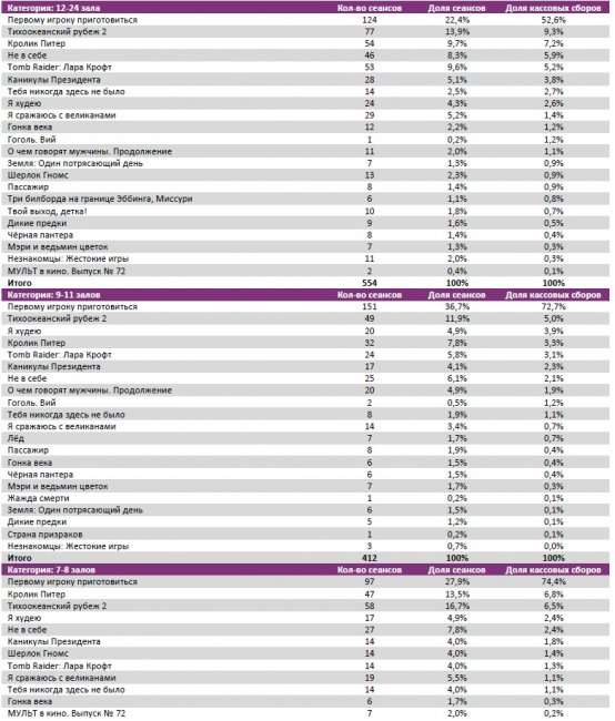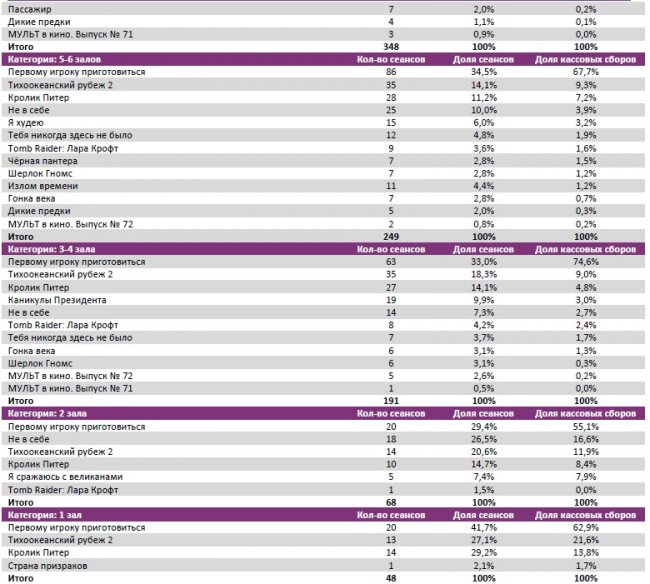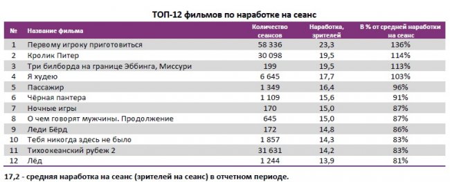 Во всех семи лучших кинотеатрах страны «Первому игроку приготовиться» стал лидером с долей сборов выше 50%.