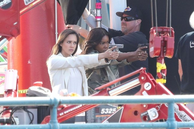 Джессика Альба и Габриэль Юнион на съёмочной площадке сериального спин-оффа "Плохих парней", который расскажет о приключениях спецагента Сидни "Сид" Баррет - сестры персонажа Мартина Лоуренса из второй части франшизы.