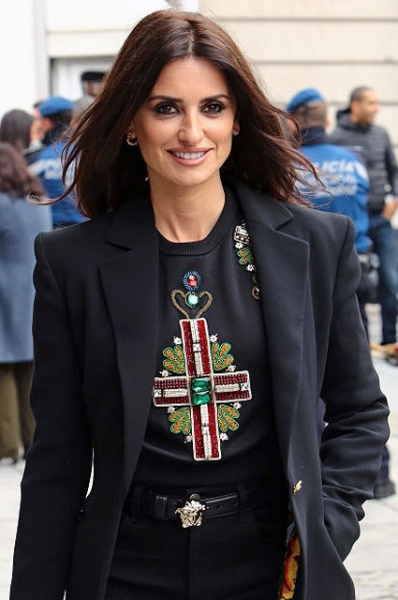 В Мадриде прошла церемония вручения премии Adoptive Son, лауреатом которой стал режиссер Педро Альмодовар, а поздравить его приехала Пенелопа Крус. Папарацци сфотографировали 43-летнюю актрису на улице ее родного города. Кинозвезда не была расстроена встречей с фотографами, наоборот, с улыбкой позировала и демонстрировала строгий образ, который можно было бы назвать total black, если бы не разноцветный декор на джемпере Versace.