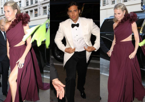 Гвинет отказалась от традиционного свадебного платья. Невеста появилась перед папарацци в вечернем платье от французского дизайнера Джамбаттиста Валли. Брэд выглядел элегантно в черных брюках, белой рубашке и белом пиджаке.