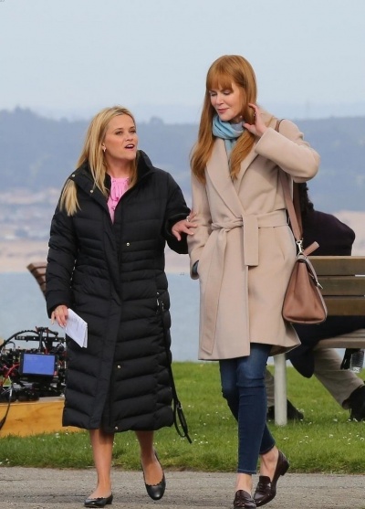 Риз Уизерспун и Николь Кидман на съемках "Большой маленькой лжи"