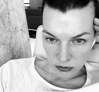 На новом фото Милла Йовович выглядит сильно уставшей, быть может, так повлиял на ее внешний вид ракурс и тот факт, что она сделала черно-белый снимок.