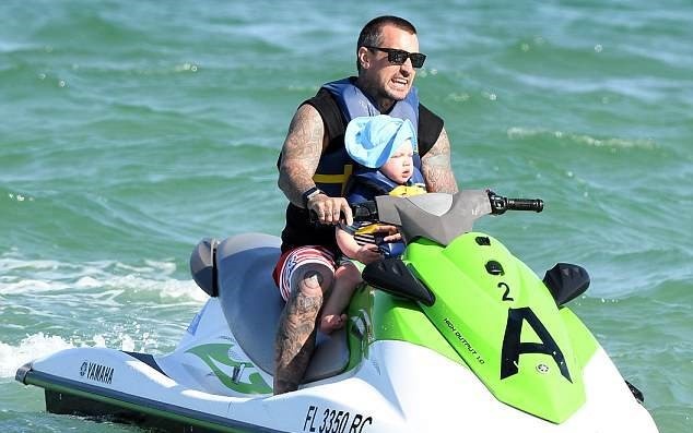 Пара с детьми рассекала на гидроциклах, а также нежилась на солнышке и прыгала на батутах.