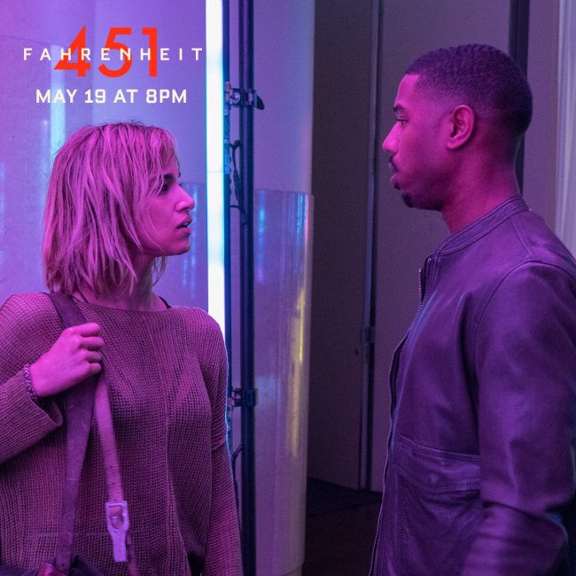 София Бутелла и Майкл Б. Джордан на промофото к новой экранизации антиутопии «451 градус по Фаренгейту». Также в каст фильма вошли Майкл Шэннон, Лора Харрьер («Человек-паук: Возвращение домой») и Мартин Донован («Доверие», «Простые люди»).