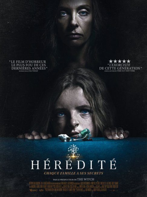 Французский плакат мистического фильма ужасов «Реинкарнация», созданного режиссёром и сценаристом Ари Астером. В актёрский состав хоррора вошли Гэбриел Бирн, Тони Коллетт, Алекс Вулфф и Энн Дауд.