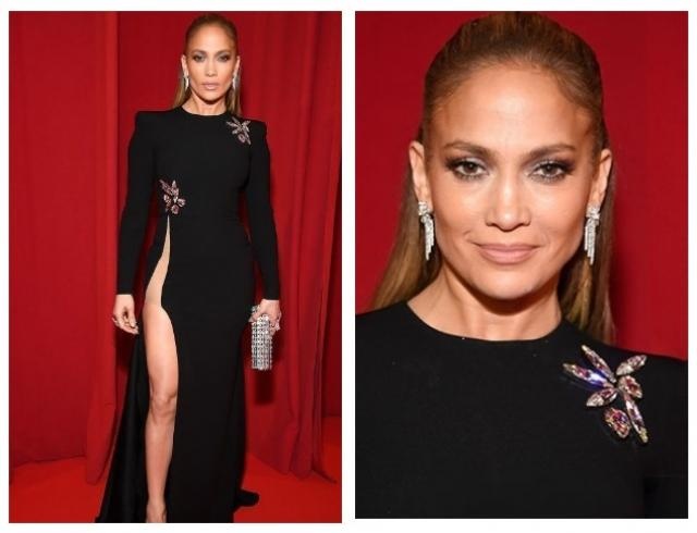 Впрочем, хоть образ в целом и был невероятно роскошный, все внимание на себя все-таки перетягивало откровенное платье, под которое Лопес, кажется, даже не надела нижнего белья.