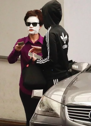 Узнать звезду удалось не сразу. Чтобы процедуры не мешали решать другие дела, из клиники женщины отправились прямо в косметических масках.