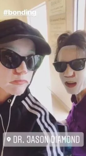 Позже в Instagram-stories Кэти также выложила селфи с мамой в масках на лице.
