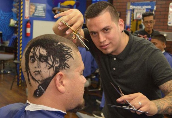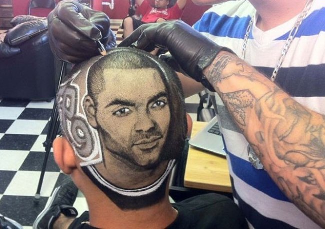 Парикмахер создает портреты знаменитостей на головах своих клиентов