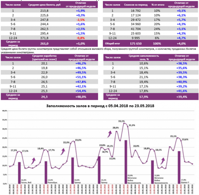 Наработка на сеанс возросла с 16 зрителей до 24.