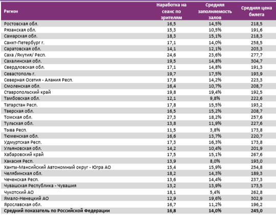 Заполняемость залов и наработка на сеанс снизились за неделю на 22% и 31% соответственно.
