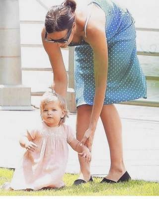 Известная манекенщица вышла на прогулку вместе с дочкой.