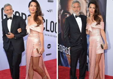 Для церемонии Амаль выбрала нежно-розовое платье от Prada. После того, как Джордж стал лауреатом премии за выдающиеся достижения в кино, жена наградила его сладким поцелуем. Супруги были очень трогательными и романтическими весь вечер: они не стеснялись на публичные проявления трепетных чувств, то и дело сливаясь в нежных объятиях и поцелуях.