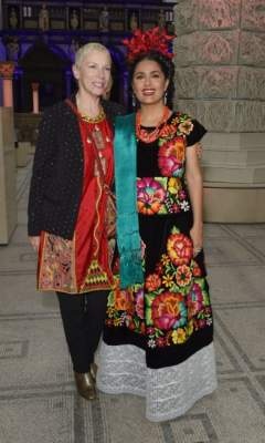Голливудская актриса Сальма Хайек выбрала оригинальный наряд – на одном из светских мероприятий в Лондоне звезда появилась в образе знаменитой мексиканской художницы Фриды Кало.