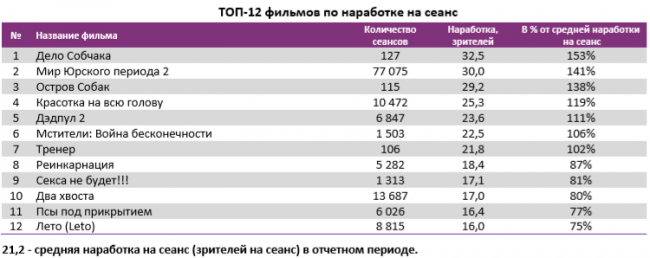 Лучшая наработка на сеанс оказалась у «Дела Собчака», стартовавшего с превью-показов.