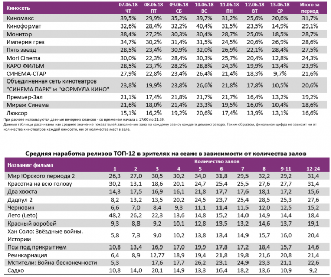 Репертуарное планирование кинотеатров с наибольшей выручкой за период В лучших кинотеатрах страны «Мир Юрского периода 2» показал долю сборов от 61% до 87%, то есть выше средней по стране (59%).