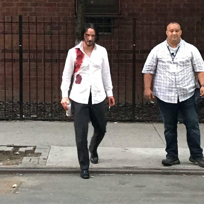 Несколько свежих фотографий со съёмок боевика «Джон Уик 3: Парабеллум» с Киану Ривзом. Режиссёрское кресло проекта занимает Чэд Стахелски, работавший над двумя предыдущими частями экшен-франшизы.