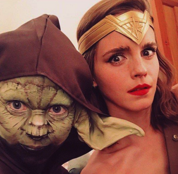 На нем она позирует в костюме "Чудо-женщины", в котором раньше можно было увидеть израильскую актрису Галь Гадот. Рядом с ней стоит переодетый Йода из саги "Звездные войны". Оказалось, актриса побывала на костюмированной вечеринке, для которой выбрала такой неожиданный наряд.