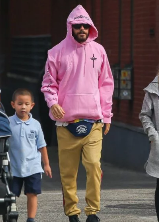 Так, на днях всемирно известного исполнителя Джареда Лето заметили на улицах Лос-Анджелесе в необычном наряде. Певец был одет в стильные бежевые брюки и широкую розовую толстовку. И все бы ничего, если бы не надписи на спине кофты знаменитости.