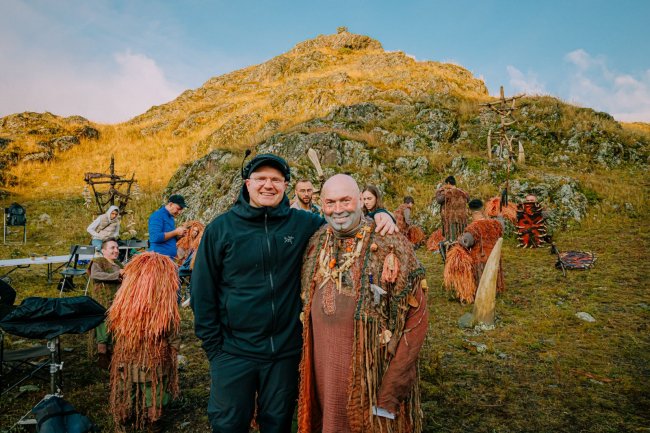 «Так как чуди — гордый, воинственный, но низкорослый народ, мы пригласили актеров маленького роста. Двадцать человек искали по всей стране. Понятно, что вождь не мог сильно отличаться от них по росту, поэтому мы планировали снимать только лицо артиста и при помощи компьютерной графики перенести его на другое тело. Но во время проб стало понятно, что благодаря костюму и правильным движениям персонажа сможет почти полностью сыграть сам Виктор Иванович. Правда, для этого ему придется стоять на коленях. И Виктор Иванович — ему, на секундочку, 72 года — согласился на такую идею и провел пять смен, стоя на коленях. Подниматься отказывался, делал все очень филигранно, в том числе и трюки», — вспоминает Маслов.