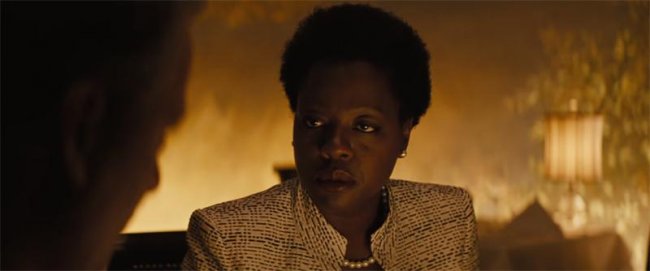 Аманда Уоллер, роль которой сыграла Виола Дэвис, впервые появляется в кадре трейлера. С чего же начать описание Аманды? Она совершенна. В трейлере мы слышим информацию о том, что она занимается раскруткой и продажей автомобилей в Кандаке (Khandaq), городе из комиксов DC. Как сказала сама Аманда, "Манипулировать людьми против их же интересов - моя работа". Также, мы слышим, что ее брючный костюм застрахован на 10 тыс. долларов. Однажды, она встретила Бэтмена в самолете, и сказала ему: "Будь предельно осмотрительным, богатенький мальчик". Аманда Уоллер походит на персонажа Ника Фьюри из вселенной DC в том, что она знает все секреты, постоянно в разногласии как с подчиненными, так и с руководством, и является первосортным негативным персонажем на фоне всеобщей картины.