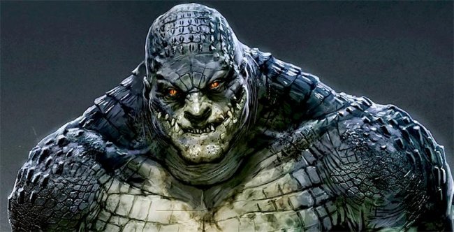 Киллер Крок (Killer Croc). Облик Убийцы Крока притерпевал изменения на протяжении многих лет, от гигантского человека с чешуйчатой кожей, до ... гм, гигантского крокодила, который напоминает человека. Судя по гриму Адевале Акиннуойе-Агбадже, в фильме будет использован первоначальный образ, будто бы Крок был рожден человеком, а затем мутировал. Он родился с формой атавизма, который дал ему уникальную кожу. Будучи с детства предметом издевок и насмешек из-за его внешнего вида, Вэйлон Джонс прибег к криминальной жизни. Его массивное телосложение облегчило этот переход от обычной жизни к криминалу, и он стал признанным членом команды разбойников в галерее Бэтмена. В конечном счете, он был заражен мутагенным вирусом, который способствовал развитию крокодильих способностей и частей тела таких, как хвост и когти. В команде больше нет подобных здоровяков-силачей, поэтому его шансы на выживание можно оценить в 50%.