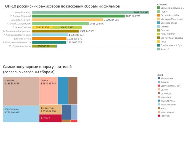 », который собрал 3,8 млрд рублей, Алексей Нужный с «Бременскими музыкантами», касса которых перевалила за 3 млрд рублей, Михаил Локшин, чья экранизация «Мастера и Маргариты» принесла 2,3 млрд рублей, Юрий Хмельницкий