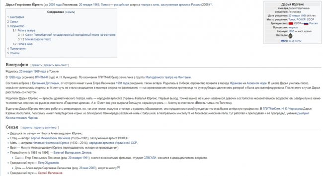 "Юргенс Дарья Георгиевна. Российская актриса театра и кино, заслуженная артистка России", - говорится в сообщении.