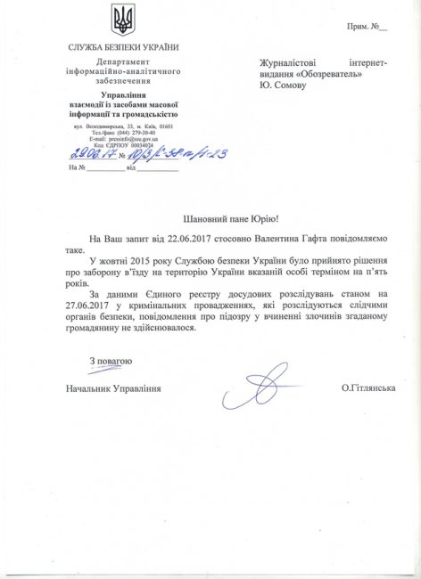 Соответствующий документ был предоставлен СБУ на запрос "Обозревателя".