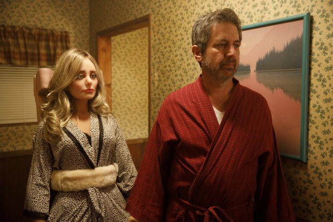 Байрону противопоставляется еще один комичный герой — отец Хейзел Герберт (Рэй Романо), открыто живущий в реальном мире с искусственной партнершей, секс-куклой Дайан. Он одевает ее, сажает за стол, готовит ей ужин (а потом сам его съедает, но делает вид, что ест она). Это тоже подмена, своеобразный эскапизм, развивающийся от страха реальных отношений и имеющий место в мире. Пару лет назад фестиваль ДОКер показывал документальный фильм о мужчинах, которые предпочитают силиконовых женщин реальным, вступают с ними в брак, а до этого на полном серьезе знакомят с избранницами собственных родителей. Можно воспринимать их как чудаков, а можно насторожиться, что количество таких людей с каждым годом растет, да и андроиды становятся все совершеннее. В сериале, как и в жизни, Герберт никому не причиняет зла своими причудами, но так уж получается, что оба самых важных мужчины в жизни Хейзел оказываются с прибабахом по части взаимоотношений с внешним миром, а у самой у нее в голове, напомним, находится чертов чип, который она так хочет вытащить. И это еще одна топ-тема сегодняшнего дня, которую создатели сериала максимально громко обсмеивают. В хоромах мужа Хейзел приходится даже ставить оценки своим оргазмам по десятибалльной шкале, в то время как Байрон бредит идеей идеальной пары, мозговая деятельность которой будет слита в единое целое.