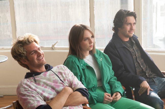 , Коппола мимоходом, поначалу даже чуть заблеренно, будто бы картинка плавится под палящим солнцем Лос-Анджелеса, фиксирует чью-то жизнь – здесь, однако, с куда большим вниманием к форме и деталям. И вот уже неспешный инди-реализм экспозиции сменяется настоящим бенефисом Эндрю Гарфилда, построенном на крупных планах, пронзительных взглядах и сверкающих костюмах.