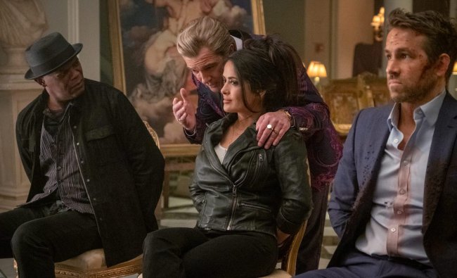 , играющего Дариуса Кинкейда, рискового киллера, любителя выражения «мазафака», добавляется упомянутая еще в оригинале жена Кинкейда – Соня, мошенница, вышедшая из тюрьмы, в ярком исполнении Сальмы Хайек