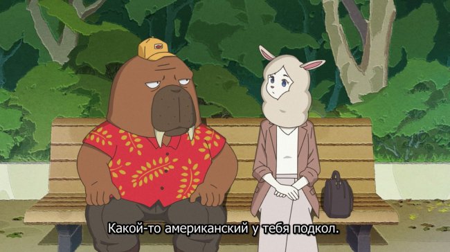 Заячьему ритму, привычному для сюжетов со зверьми, здесь предпочли моржовую медитативность, лаконичным перебранкам — долгие разговоры за жизнь, близящиеся к идеалам мамблкора (формат низкобюджетного кино, где треп и есть сюжет). В галерее эксцентричных зверей и их бед вскоре собирается иконостас фильмов-нуар: Добу и его конкуренты (лучший — дикобраз-фристайлер Яно); трио 18-летних девочек-айдолов в клещах общественных и личных ожиданий; роковая лама-медсестра Сиракава, в любой непонятной ситуации бьющая в челюсть; полицейские Даймон — близнецы-антиподы; шальной геймдизайнер Танака, жаждущий обладать чем-то «исключительным»; и прочие.