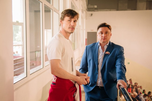 – на сей раз он сыграл спонсора спортивной команды, пропихивающего на пьедестал сына (Витек Трубачев