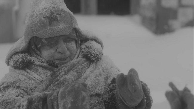 Текст Берггольц настолько эмоционально ярок, что мгновенно выходит на первый план, сосредотачивая на себе внимание, а визуальное тело фильма превращается в иллюстрацию сказанного. Мы слышим, как Анна решила пожертвовать одним из детей, выбрала младшую и перестала ее кормить. В кадре плачет ребенок. Мы слышим, как замерзшие трупы складывали во дворе, пока из них не образовалась поленница. В кадре – поленница из трупов. Голос сообщает о мужчине, который жевал перчатку. На экране актер Борис Петров