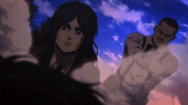 Напоследок сериал демонстрирует еще один козырь в рукаве. Пик и Тео Магат — Титан-перевозчик и главнокомандующий марлийской армии — встречают Ханджи Зоэ. Ее мы не видели с первой серии «Второй части», когда она вместе с раненным Лени Аккерманом спасалась вплавь от Флока и йегеристов, разыскивавших Зика. Над Лени изрядно поработали бинтами, но он жив, а значит, у мира еще есть надежда. Даже не одна.
