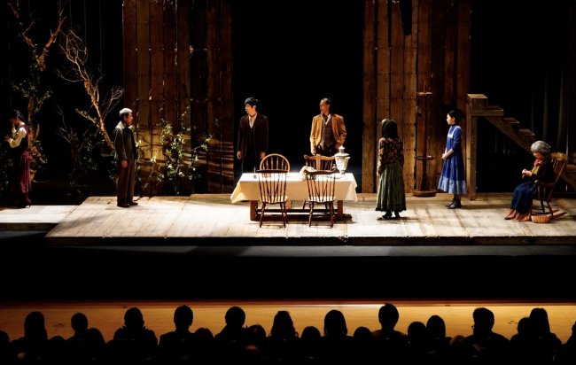 Именно здесь, на театральном фестивале два года спустя, Юсуке будет ставить «Дядю Ваню» с артистами из Японии и Китая, Кореи и Филиппин, не пытаясь привести к одному знаменателю гомон азиатского квартала Вавилонской башни, где также различимы английский и жестовый языки. Проще говоря, каждый изъясняется на родном. Титульную роль Кафуку доверяет опальному Коши Такацуки (Масаки Окада