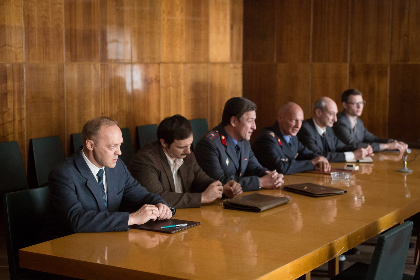 ) готовится сделать роковой звонок в дверь, на сцены изнутри квартиры Чикатило (Дмитрий Нагиев) — он слышит трель, но, открыв дверь, видит там вовсе не милиционершу. А она, в свою очередь, приводит на допрос совсем другого человека. Так становится понятно, что до закрытия дела еще надо дожить. Свет в конце этого мрачного провинциального туннеля все же виден: мало того, что в истории реального Чикатило справедливость-таки восторжествовала, так и в киношной версии мы, наконец, видим персонажа Нагиева за решеткой. Эти сцены, забегающие в будущее по отношению к основной сюжетной линии, демонстрируют громкий процесс — пойманный преступник паясничает в клетке, пытаясь прикинуться невменяемым, зал негодует (кое-кто даже замышляет диверсию), судья тщетно пытается вести допрос. Тем временем, параллельно показаны события 6-летней давности: ростовские опера, курируемые столичными, — вместо Кесаева в исполнении Константина Лавроненко
