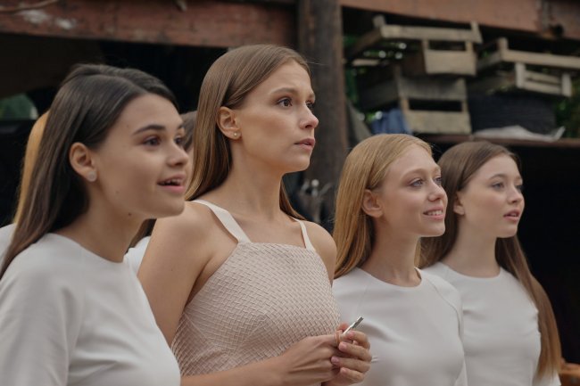 С первых же минут «Два холма» пестрят ситуативными шутками про «фем-рейх» — все, чем сегодня попрекают феминисток, стало реальностью, от повсеместного употребления феминитивов до столь же обыденного использования секс-игрушек. Впрочем, уже в первой серии между строк начинают проступать никуда, оказывается, не девшиеся за 100 с лишним лет лицемерие и мизогиния — все эти «подруги», приветствующие друг друга словами «я люблю тебя», с радостью «стучат» друг на друга ради повышения собственного социального статуса (тут, прямо как в «Черном зеркале», начисляются и отнимаются баллы общественного рейтинга). Что уж говорить про сексизм, который расцветает буйным цветом с появлением в Двух Холмах героя Никиты Кологривого — дикарь-примат не может глаз отвести от обтянутых топами и велосипедками тел обитательниц поселка, рано почувствовавших себя в безопасности в однополом вакууме.