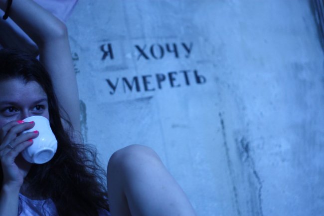 «Он научил меня медитации на мертвых», — говорит Сыроечковская, которая в 16 практиковала селфхарм от набрякающей невыносимости. Подросткового возраста. Неполной семьи. Смутных перспектив. Остроумная монтажная склейка заменяет инъекцию — водружением российского флага на морском дне. А мог быть кадр с нефтяной или газовой вышкой — иглой планетарного масштаба. Впрочем, России не так важно, (за)чем ковырять свои недра. Такой национальный селфхарм. Или намек: «пробито очередное дно».