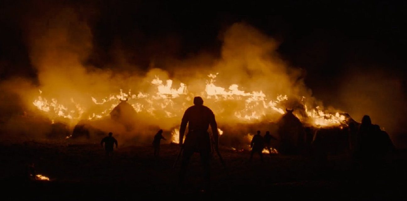 в роли ворожеи Ольги из Березовой рощи и Дефо на позиции шута до многочисленных пасмурных ракурсов анфас, роли света в мифологии насилия и звуков пердежа. Как будто один фильм был тезисом, второй — антитезисом, и вот «Варяг» — их монументальный синтез.