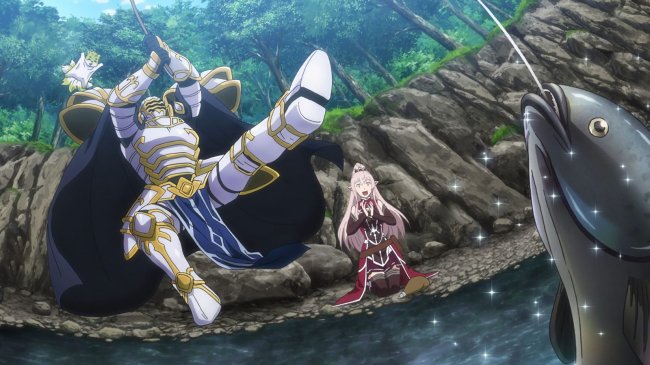 Какое-то время Арку удается замаскировать отсутствие личностных черт и внятной сюжетной линии инертностью: очевидно, что до перерождения в параллельном мире парень был затворником-ноулайфером, отчего даже в фэнтезийном королевстве ему непросто даются решительные шаги и чужое внимание. Позже появляется драматургическая ширма: благородный скелет отправляется вызволять пленных эльфов, невольно вовлекаясь в масштабный заговор королевских сиблингов в борьбе за трон. План августейших особ расписывается как гениальная многоходовочка, однако зевки сценариста слышны даже за голосами сэйю.